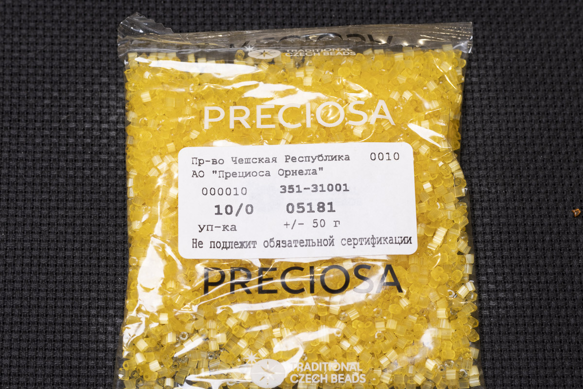 Бисер Чехия сатиновая рубка 10/0 50г 05181 желтый