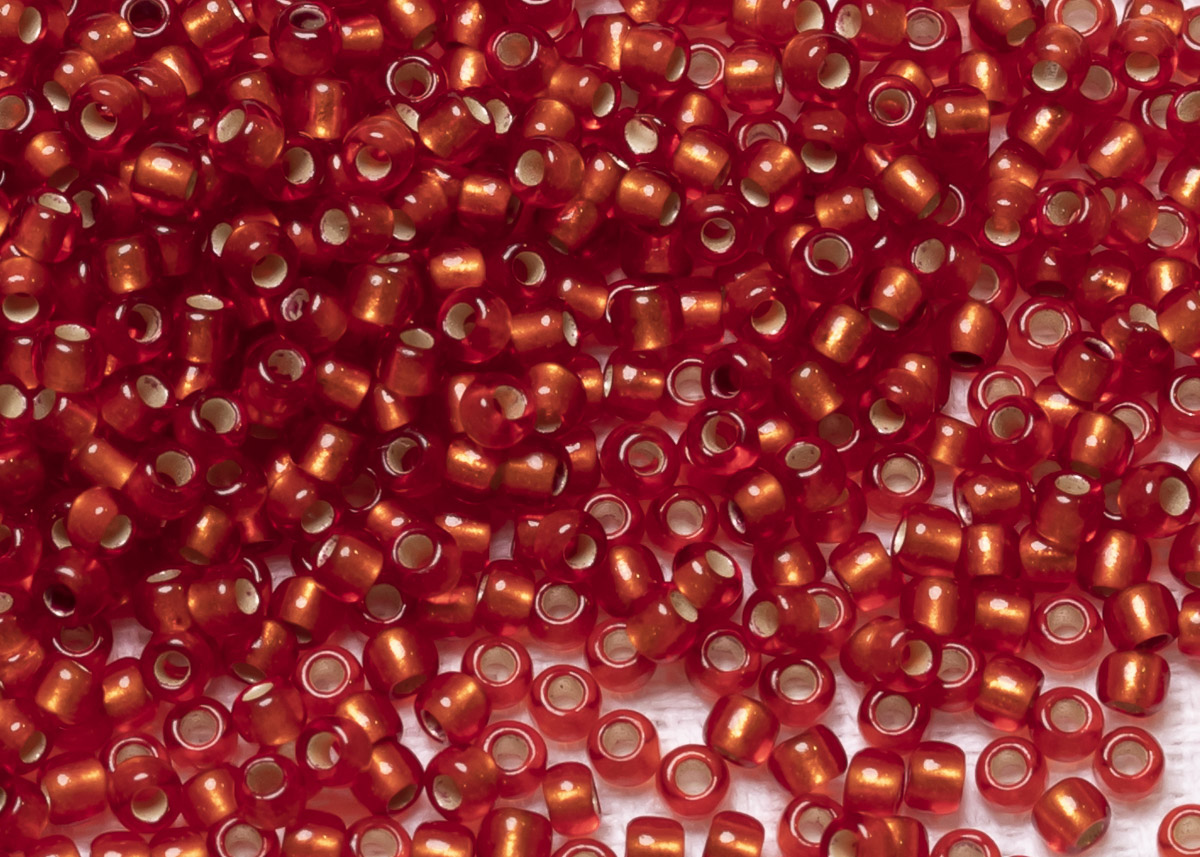 Бисер Япония круглый 11/0 10г 0025F светлый сиамский рубин матовый, серебряная линия внутри